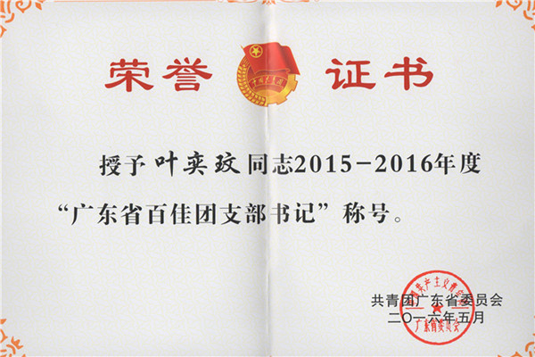 近日,市供水公司團委委員、營業(yè)團支部書記葉奕玟被共青團廣東省委評為2015-2016年度“百佳團支部書記”。
